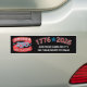 These 1776 2026 America 250 bumper stickers are easy to personalize for one of a kind patriotic merchandise. Set on a black background, the red white and blue theme really pops. Add your state to the main America 250 design then add a custom message in white lettering underneath the gently arched 1776 2026. Personalized bumper stickers are a fun way to celebrate and promote America's Semiquincentennial.