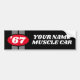 L'année faite sur commande de construction emballant des rayures muscle l'adhésif pour pare-chocs de hot rod de voiture. Conception vintage de décalque de nombre d'âge avec les lignes rayées. Idée unique de cadeau d'anniversaire pour le collecteur classique de voiture de sport, le concessionnaire automobile, le rétro vendeur de voiture, le propriétaire de garage, le mécanicien, le propriétaire de véhicule de hot rod, l'atelier de réparations de voiture, le club automobile, le tuner, le passe-temps de restauration de voiture ou les affaires, le papa, le commissaire-priseur, la maman, la mère, le père, l'oncle, le grand-papa, le frère, le fils, le travailleur de Co, le patron, l'année faite sur commande nombre c.-à-d. 1967 de l'ami etc. Couleurs rouges et noires. Ajoutez votre nom de la société, citation drôle ou monogramme sur option. En outre gentil pour de nouveaux supercars chers.