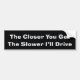 Anti-Tailgater Bumpersticker. Il indique que plus vous étroits m'obtenez plus conduirai là-dessus lentement