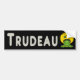 La conception anti-Trudeau montre le mot "Trudeau" suivi d'un visage vomissant. Une déclaration claire de rejet de M. Trudeau.