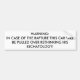 AUTOCOLLANT DE VOITURE AVERTISSEMENT : EN CAS D'ENCHANTEMENT CETTE