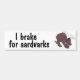 La conception drôle d'adhésif pour pare-chocs d'oryctérope de bébé de bande dessinée indique : Je freine pour des oryctéropes.