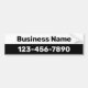 This business bumper sticker has display text you can edit to show your business name and phone number. The top is white with black text for the company name. The bottom is black with white digits for your phone number. All text can be edited or deleted.