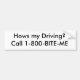 Autocollant De Voiture Comment mon entraînement ? Appel 1-800-BITE-ME