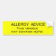 Conseil d'allergie - ce véhicule peut contenir des écrous. Voiture contenant des écrous. Panneau d'avertissement.