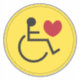Autocollant rond de voiture pour handicapés jaune et noir avec symbole de fauteuil roulant avec symbole de personne et symbole de coeur d'amour rouge. Si vous avez besoin d'autres autocollants comme celui-ci, s'il vous plaît envoyez-moi un message via Zazzle.