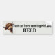 Un autocollant de pare-chocs de vache de montagne mignon avec la phrase, "Juste ici en courant avec le HERD. Un autocollant mignon pour les amateurs de vaches hautes terres, les véhicules de ferme, ou juste pour le plaisir.