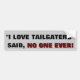 Autocollant De Voiture "J'aime des tailgaters" - n'a dit PERSONNE JAMAIS