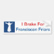 Bumpersticker avec le logo de franciscains des USA et le message : 'Je freine pour les moines franciscains".
