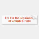 Autocollant De Voiture Je suis pour l'église de Separationof et déteste