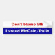 Autocollant De Voiture Ne me blâmez pas, j'a voté McCain/Palin