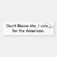 Autocollant De Voiture Ne me blâmez pas, j'a voté pour l'Américain