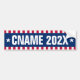Autocollant avec votre nom de candidat personnalisé et l'année dans une police blanche en gras flanquée d'étoiles sur fond bleu avec des bordures rouges et blanches rayées au-dessus et en dessous.