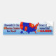 Vous êtes-vous jamais demandés comment le rouge est devenu la couleur pour le droit et le bleu pour la gauche ? Est-ce que ceci ne semble pas défier le bon sens ? Traditionnellement parlant, le rouge a toujours signifié la droite gauche et bleue. Bien, chose rouge/bleue du tout d'état est une invention récente et elle a seulement commencé à apparaître pendant l'élection 2000. Vers le haut de jusqu'à ce point, les médias ont employé toutes les sortes de couleurs (pas simplement bleu et rouge) pour représenter les candidats dans les élections et il a varié par le réseau. Entre d'autres courses, en 1980 et 1984, le NBC a employé le bleu pour Reagan et le rouge pour les candidats Democratic. L'Ancre David Brinkley de nouvelles de NBC a indiqué pendant l'élection 1980, "elle commence à ressembler à une piscine suburbaine" comme Reagan a gagné l'état après état et la carte est devenue plus bleue et plus bleue. Le temps s'est rapporté à la carte d'élection cette année en tant que "lac Reagan." Cet adhésif pour pare-chocs montre la carte 2008 d'élection pendant qu'elle devrait regarder avec bleu étant reconstitué à son endroit légitime et au rouge communiste d'états d'Obama.