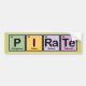Le pirate de mot a orthographié utilisant les carrés colorés représentant des éléments de la table périodique. Une idée mignonne de cadeau pour n'importe qui que pirates d'amours, particulièrement s'ils ont également un intérêt pour la science ou la chimie. Grand pour le "entretien comme un jour de pirate" aussi ! Phosphore + Iode + Radium + Tellerium = pirate