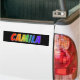Ces caractéristiques de conception multicolores et d'amusement d'adhésif pour pare-chocs le prénom commun "CAMILA" avec les lettres ayant un spectre coloré d'arc-en-ciel comme le motif de coloration de gradient. L'arrière - plan est coloré noir. Un adhésif pour pare-chocs comme ceci pourrait être un amusement actuel pour donner à quelqu'un Camila appelée. [~Z0000343]