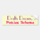 Autocollant pare-chocs avec "Drafts Dream" en lettres violettes, "Ponies Scheme" en lettres roses, jaune clair arrière - plan