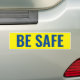SOYEZ signe/autocollant SÛRS, lettres BLEUES sur le JAUNE en police Semi-Audacieuse d'Oswald