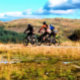 Une aquarelle a de trois hommes VTT dans les collines galloises.