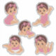 Cette feuille comprend 5 autocollants découpés adorables d'un bébé aux cheveux bruns. Parfaits pour décorer des cahiers, des albums de scrapbooking ou des faveurs de fête, ces autocollants ajoutent une touche charmante et ludique à tout projet ou célébration. Idéal pour les fêtes de bébé, les cadeaux ou le plaisir quotidien !