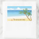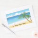 Autocollant rectangulaire avec l'image d'une journée idéale sur une île déserte et texte facultatif. Voir confettis assortis, sac de faveur, grand sac cadeau, étiquette cadeau et papier d'emballage. Voir l'ensemble de la collection Shipwreck Sticker dans les INVITATIONS | Section Stickers & Étiquettes.