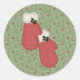 Ce Sticker d'hiver présente des mitaines en plaid rouge de style champêtre sur un arrière - plan d'impression calico vert. Parfait pour les vacances !