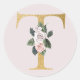 Autocollant d'initiales en or de roses printanière