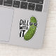 Cet autocollant drôle est parfait pour les amateurs de cornichons et les amateurs de jeux de mots ! Avec un cornichon cool portant des lunettes de soleil et la phrase "Dill With It", ce design est une façon ludique de montrer votre amour pour tout ce qui est mariné. Réalisé en vinyle durable, cet autocollant est idéal pour les ordinateurs portables, les bouteilles d'eau et plus encore.