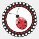 Joint/autocollant ronds élégants d'enveloppe fait dedans avec, avec un bord externe noir, avec le pois blanc et rouge. Graphiques mignons d'une coccinelle rouge et noire, au centre. Touche finale parfaite invitations de notre fille de polka de point et de fleur à anniversaire.