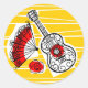 Un design fantaisiste de style rétro avec des souvenirs de vacances espagnoles, une guitare en fer forgé, un ventilateur en dentelle et une rose rouge. Un design personnalisable en noir, blanc, rouge et jaune doré pour que vous personnalisiez avec vos propres textes, images et idées. Image d'art numérique originale créée par QuirkyChic.