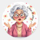 Un adorable autocollant représentant une femme âgée aux cheveux blancs et au regard pétillant, levant les mains avec surprise et joie en recevant une pluie d’enveloppes ornées de cœurs rouges. Son cardigan rose et son collier doré ajoutent une touche chaleureuse et élégante. Parfait pour décorer carnets, lettres ou ordinateurs avec une note d’amour et de tendresse.