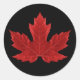 Feuille d'érable rouge vif sur un arrière - plan noir.