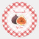 Autocollants rétro personnalisables pour confiture de figues maison, gelée ou préserve des jarres aux figues fraîches sur motif de nappes en vichy rouge et blanc. Ils peuvent être collés sur le couvercle ou sur le bocal lui-même et ont une collection personnalisée. D'autres fruits confectionnent également des autocollants de pot!