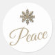 Ajoutez une touche d'élégance à vos envois et colis de vacances avec cet autocollant rond magnifique. Le fond blanc simple et propre est orné d'un flocon de neige en or brossé en haut, symbolisant la beauté sereine de la saison. En dessous, le mot "Paix" est délicatement écrit dans une police de caractères classique, capturant l'esprit de tranquillité et de bonne volonté. Parfait pour ajouter une touche sincère à vos vœux de fête, ces autocollants sont un moyen charmant de répandre la joie et la chaleur pendant cette période des fêtes. Utilisez-les pour sceller des enveloppes, décorer des emballages cadeaux ou orner des faveurs de vacances. Élevez votre présentation des fêtes avec ce design captivant et significatif.