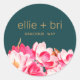 Autocollant rond élégant avec de magnifiques magnolias roses vintage colorés.