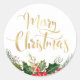 Cet autocollant a une merveilleuse couronne florale d'hiver dessinée à la main avec un élégant faux script d'or. Les détails du texte peuvent être personnalisés pour la couleur, la police et le placement.