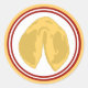 Un autocollant avec l'illustration d'un biscuit chinois au centre. Le biscuit est entouré d'un cercle rouge. Le cercle est rempli de blanc. L'Arrière - plan est or. Recherchez les articles correspondants chez Jill's Paperie.