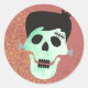 Ajoutez une touche de finition éffrayante-mignonne à votre fête d'anniversaire d'Halloween avec cet autocollant de mash monstre Frankenstein ! Doté d'un crâne monstre vert menthe avec des bonbons, des toiles d'araignée et d'une toile orange vintage, il est parfait pour les toppers de cupcake, les sacs de faveur, les enveloppes ou la décoration de fête. Une façon amusante de personnaliser votre bash Halloween !