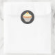 Un autocollant d'halloween avec l'illustration d'un cupcake surmonté d'un morceau de maïs-bonbons sur un arrière - plan gris foncé. Recherchez les invitations à des soirées d'halloween correspondantes chez Jill's Paperie.