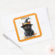 Une image mignonne d'un chat noir portant un chapeau de sorcière, est présentée sur cet autocollant carré pour Halloween. Avec le message, "Je vous souhaite un Halloween parfait", fait de ceci un excellent autocollant à utiliser pour vos envois spéciaux, la décoration, le scrapbooking et plus encore !
