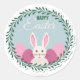 Cet autocollant blanc mignon de lapin est montré avec quelques oeufs de pâques et a un cadre de feuillage avec les mots "Joyeuses Pâques". (<a href='http://www.freepik.com/free-vector/floral-easter-egg-stickers-set_1045402.htm'>Conçu par Freepik</a>). <br/><br/>Il est facile customiser la carte avec vos mots, police, couleur de police et choix de six types de papier<br/><br/>Pas exactement que recherchez-vous ? Tous nos produits peuvent être conçus en fonction du client pour répondre à vos besoins à aucun supplément<br/><br/>Contactez-simplement nous chez askcottonlamb@gmail.com<br/><br/>Produits coordonnés disponibles :