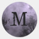Un autocollant monogramme personnalisé avec une lettre grungy style machine à écrire et un ciel d'Halloween éffrayant avec des arbres brumeux le long d'une route obscurcie, corbeaux gothiques et une pleine lune nuageuse avec une teinte violette profonde. Customisez-le pour changer vos polices, taille et plus encore, même enregistrer votre conception pour plus tard.