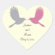 Deux inséparables décorent cet autocollant, avec les noms de la mariée et du marié, et la date du mariage.Il s'agit de l'autocollant de la faveur de mariage de coordination, ou sceau d'enveloppe pour la ligne mariage Inséparable.