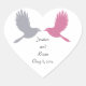 Deux inséparables décorent cet autocollant, avec les noms de la mariée et du marié, et la date du mariage.Il s'agit de l'autocollant de la faveur de mariage de coordination, ou sceau d'enveloppe pour la ligne mariage Inséparable.