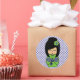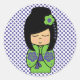 numériquement a dessiné la poupée japonaise Kokeshi. Cimono vert citron vert et violet accentué.