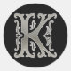 Autocollant K rond initial en argent