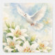 Célébrez la foi avec cet autocollant chrétien serein. Il présente une colombe blanche gracieuse en vol au milieu de lys blancs aquarelles doux et d'un lavis bleu clair. Parfait pour sceller les cartes de condoléances, les cadeaux de Pâques ou les invitations à des événements religieux.
