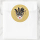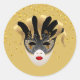 Cet autocollant rond de grande taille est présenté dans un design festif Mardi Gras masque de célébration. Customisez cet objet ou achetez tel quel.