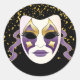 Ce petit autocollant rond est présenté dans un design festif Mardi Gras d'impression de masque de célébration. Customisez cet objet ou achetez tel quel.
