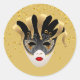 Ce petit autocollant rond est présenté dans un design festif Mardi Gras d'impression de masque de célébration. Customisez cet objet ou achetez tel quel.